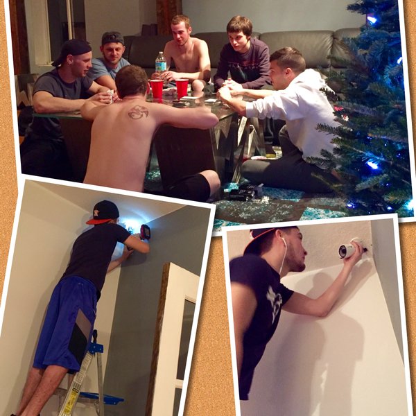 Caption: "The boys had a quiet and handyman kinda night."