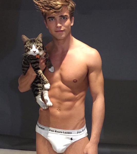 With a body like that, he probably has a nice ass too!!! What do you think of his hair style?I will take him cause he is holding a cat that looks just like my little