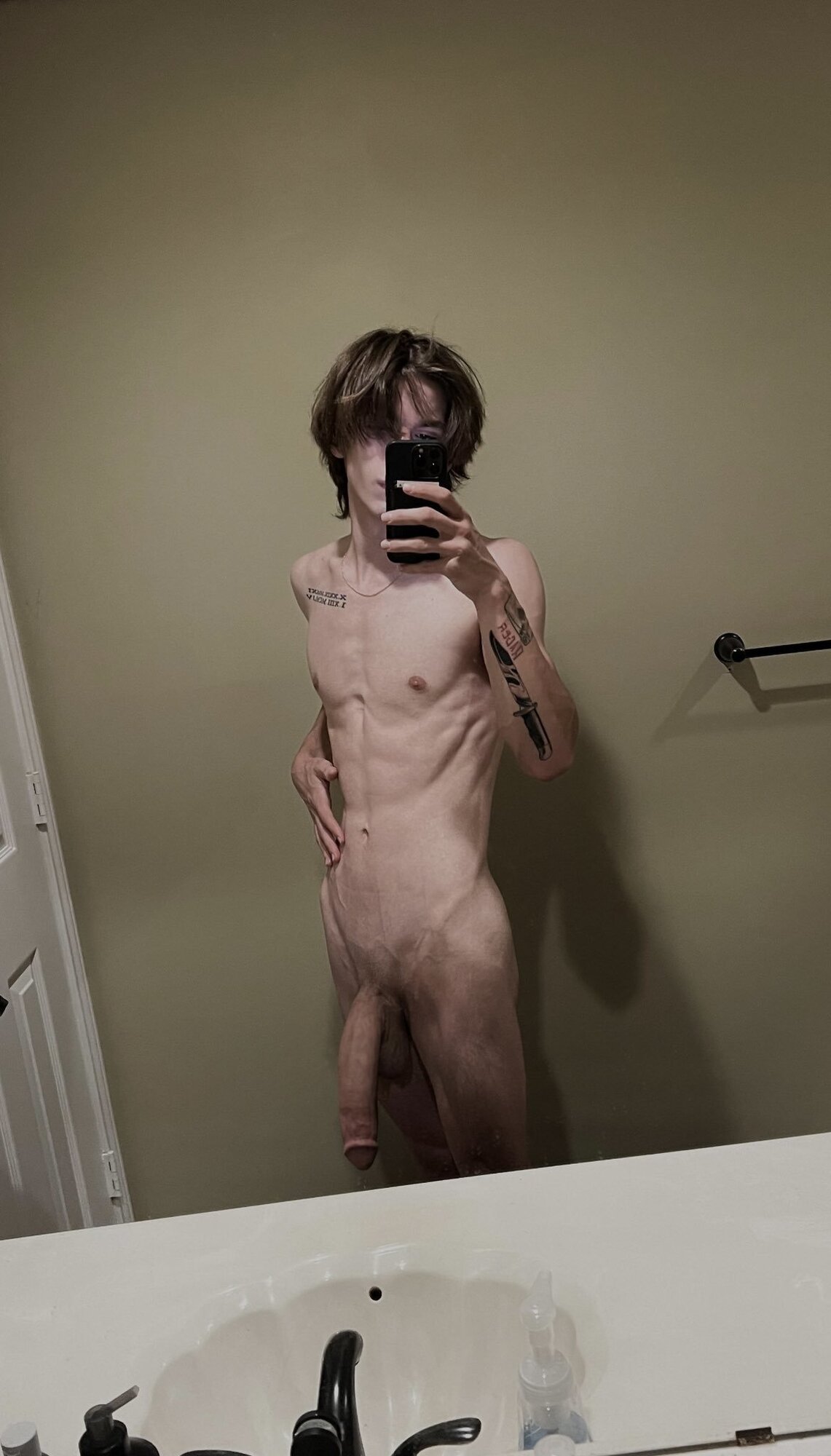Wow long cock and it's not even hard yet!Cute twink with huge cock