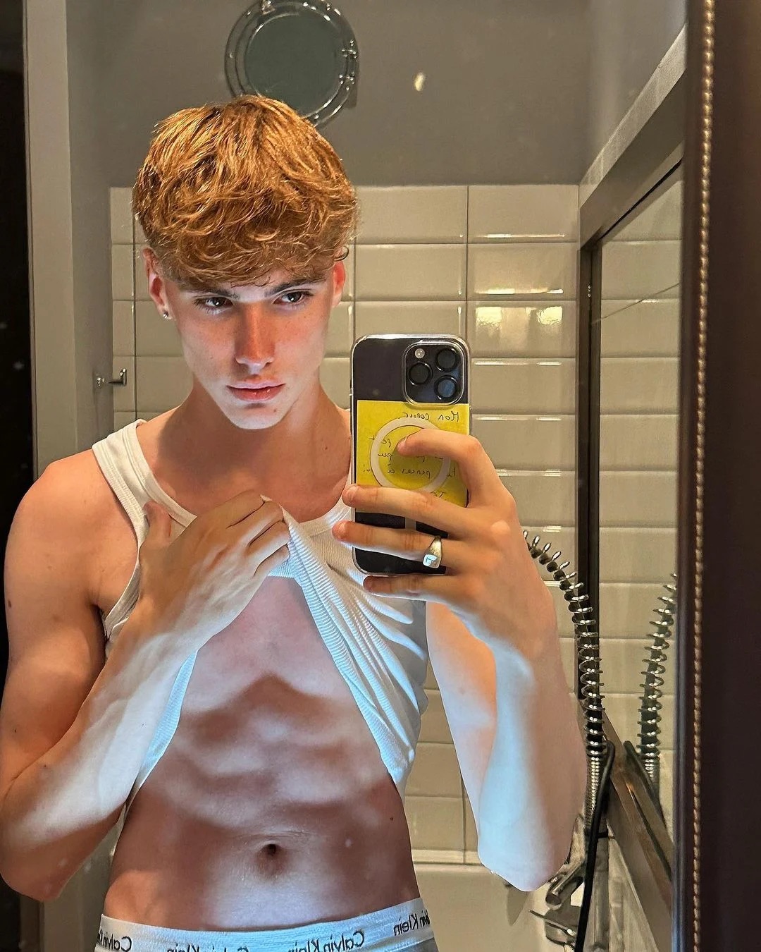 Smoking hot naked teen red headed boy with hand on his hard on!Ginger teen boy nude with very red hair