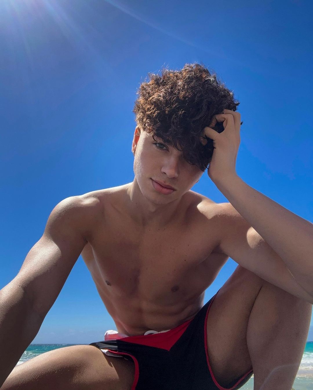 Nice hair! Now to see what's inside his swim trunks!Hot stud with dark curly hair