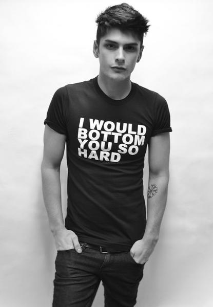 tampa24 said: I think the idea is that he's admitting to being a total bottom. I think the shirt is quite clever. lol Click to expand... You may be right. He is cute!