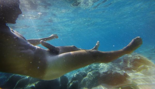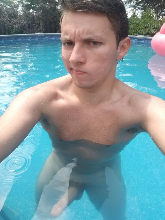 Looks like the boy fun in the pool is about to intensify!Guy showing his asshole on a pool float.