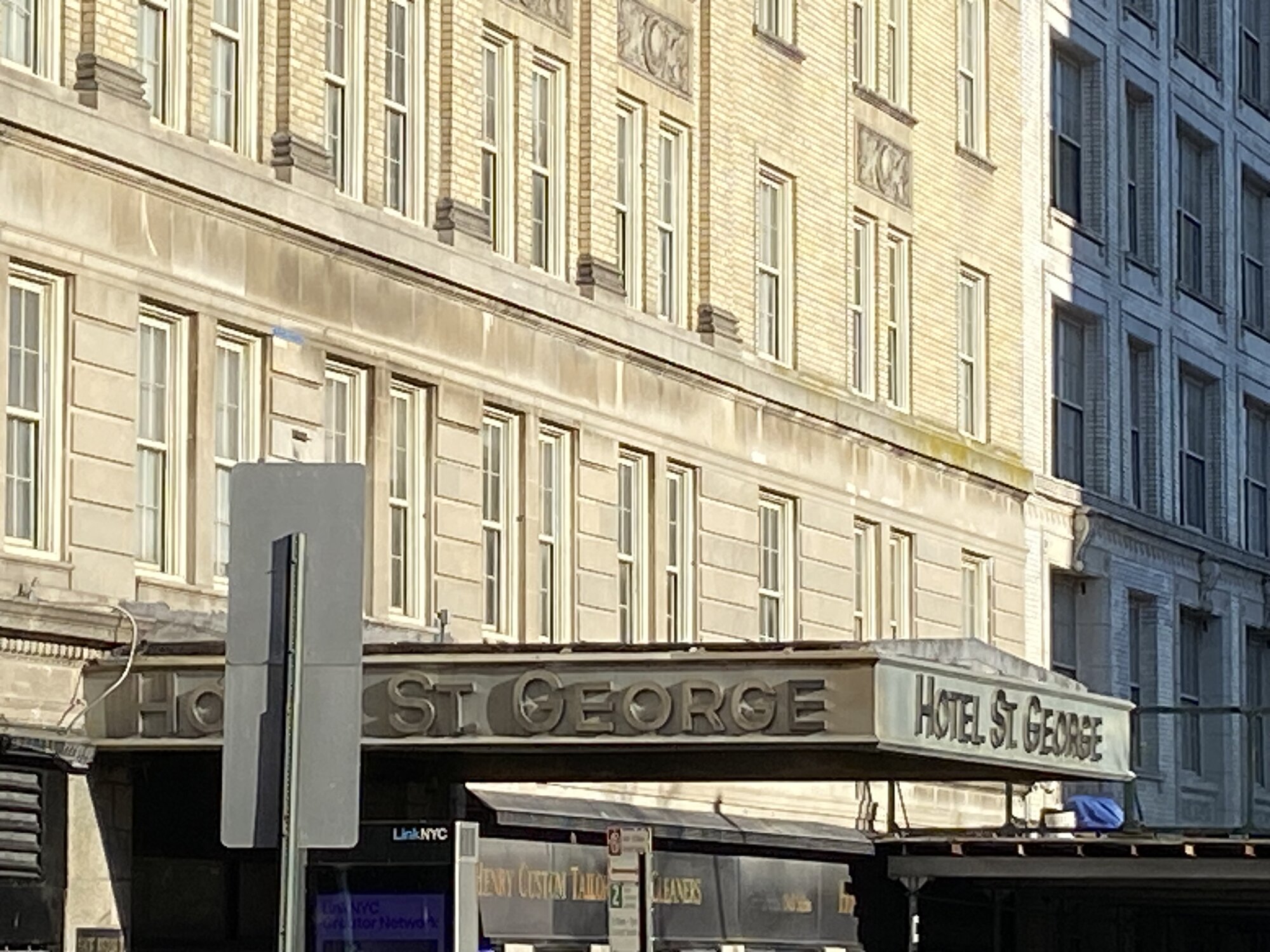 While out for ny morning chores today, I was across the street from the iconic St. George Hotel. Today it is luxury co-ops but it was once a grand hotel with grand ball rooms and a huge salt water pool in the basement. My brothers in-laws honeymooned there in 1951. It is still an imposing building. Here is a bit of history from Wikipedia.