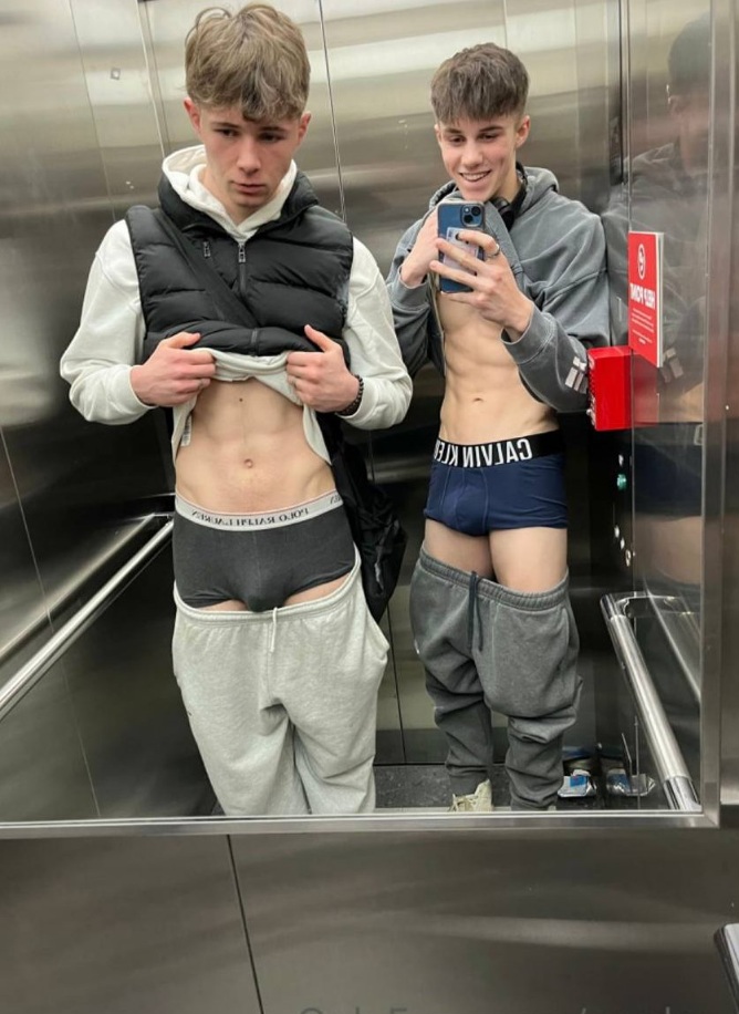 If that elevator breaks down, one could only guess what they would be doing!Hot guys in elevator showing underwear
