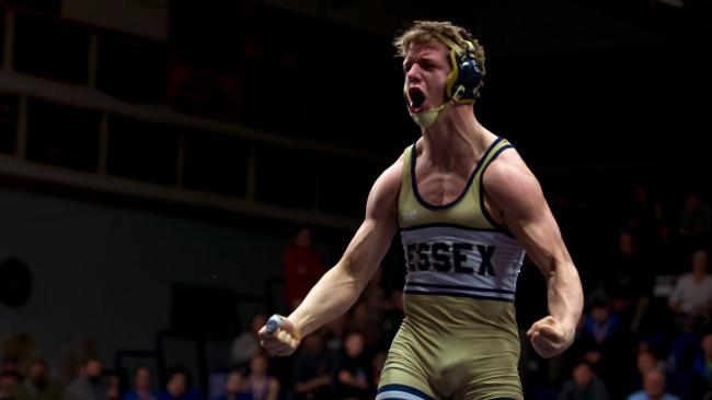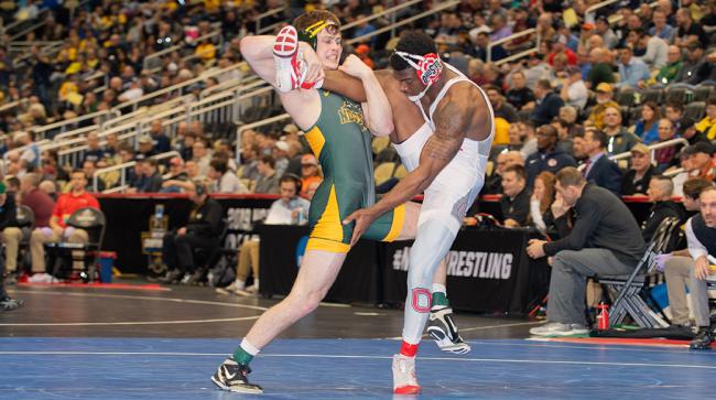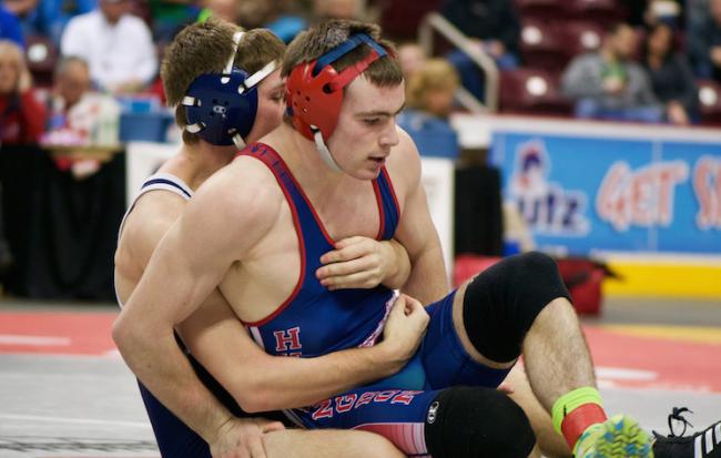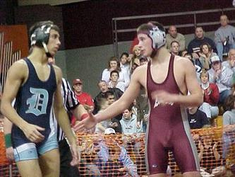 Re post # 2895: Left hand massaging opponent's right nipple, and the right hand just has to go a bit lower to massage the opponent's big package! College wrestling is a great sport which sometimes morphs into sexual foreplay!