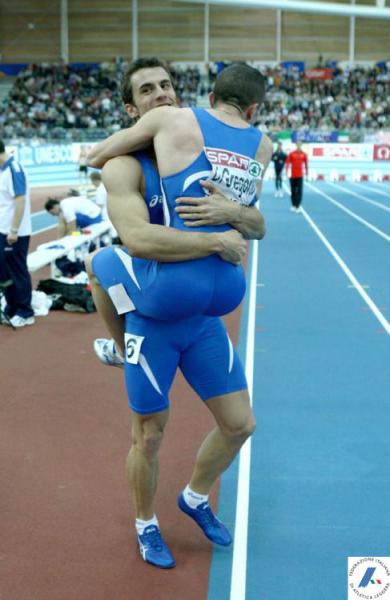 Re post # 2809: That's what I call a pair of close teammates. Note the smiles on both of their faces. Since the right hand of #12 is massaging #34's package, I'm guessing that the right hand of #34 is caressing #12's ass! Possible clue as to who will be the top and who will be the bottom?