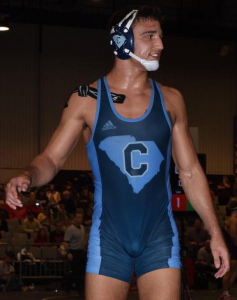 Re post # 3902: That poor jock in green: his opponent is grabbing his dick and balls with his right hand while dry humping his ass with his hard cock!