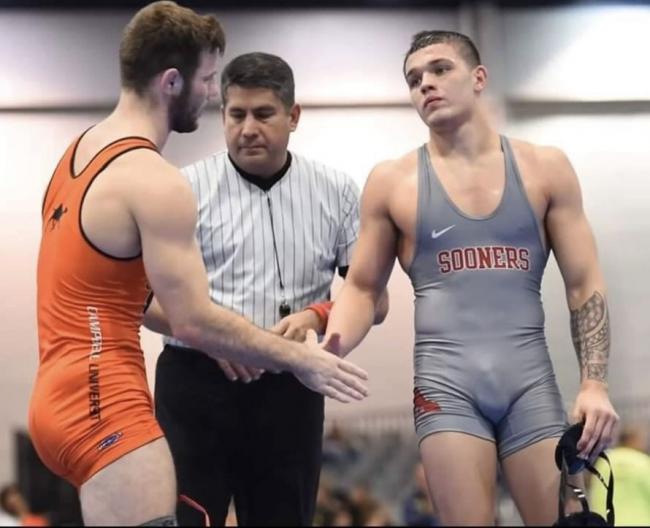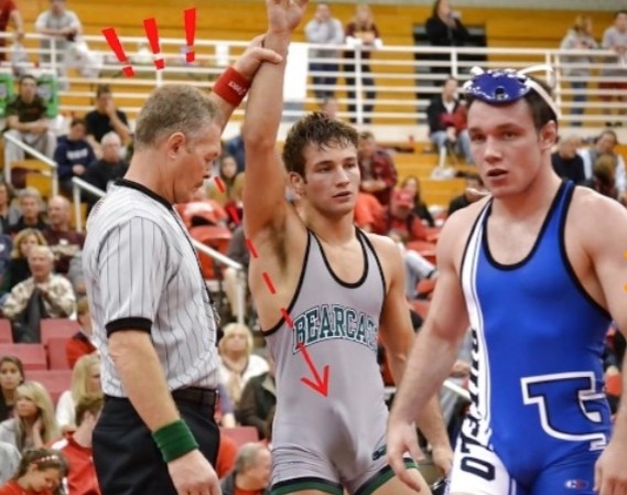 Re post # 4145: No arrow necessary to point out that thing! Must have been a LOT of close physical contact in their match to make the winner that boned up! The loser is somewhat hard as well, but if they ever get together in private, it is obvious that the winner will be the top!
