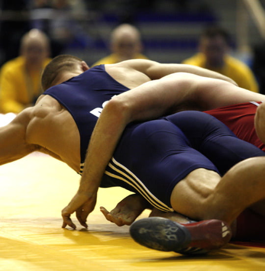 Many times it's difficult to tell which wrestler is the straighter one versus the gayer one. It's kinda like, "Who's taken advantage of whom here? If anyone?" haha Or, "Who's really enjoying this moment of physical contact the most?"