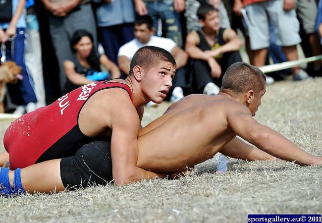 For anyone wondering I'm pretty sure these are all Turkish wrestlers. Or at least of Southeastern Europe. (Greece, Bulgaria, Romania?) But they're obviously not the Turkish oil wrestling version of the sport.