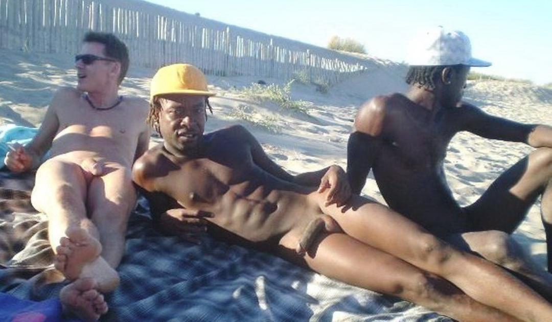 Three naked interracial sun bathers!