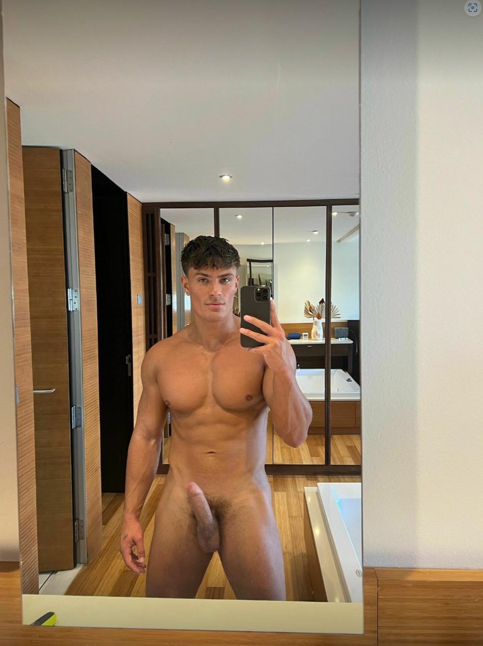 Rock hard nude dude taking selfie!