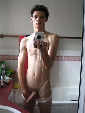 Naked boy with hard on about to record it for posterity!