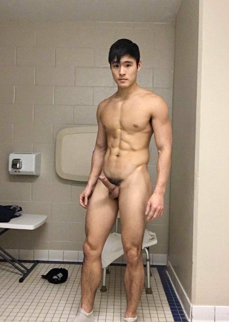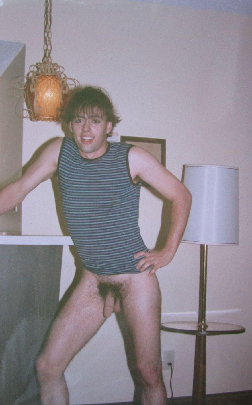 Naked student in front of his bookcase with his hard on pointing straight up!