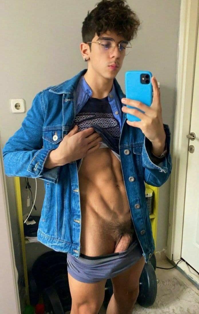 College boy flashing half of his hard cock!