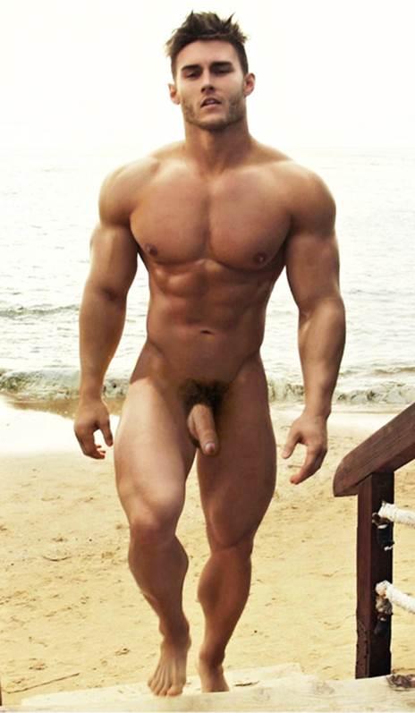 But for his hat, naked cowboy with nice cock hanging between his legs!