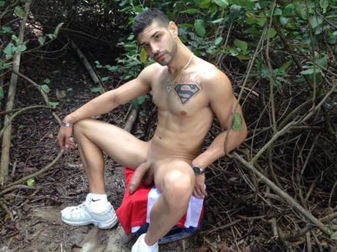 Sitting patiently in the woods for a gay hiker to come by and suck his long cock!
