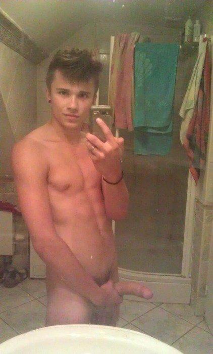 Hot bottomless boy flashing his girthy hard uncut cock!