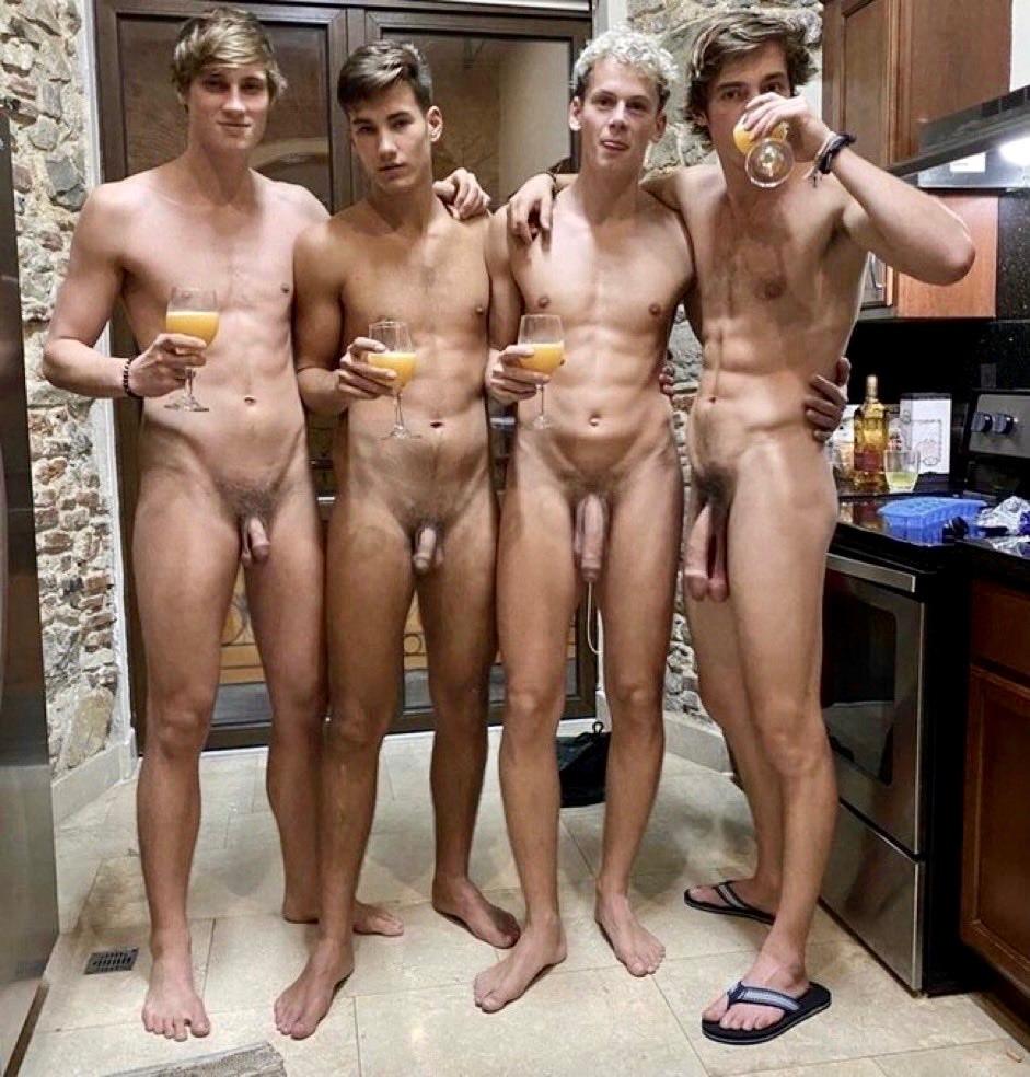 If they are having mimosas in the morning, their frat party last night must have been fun! Plus after finishing their mimosas, two on our right appear to need some head from the two on our left!