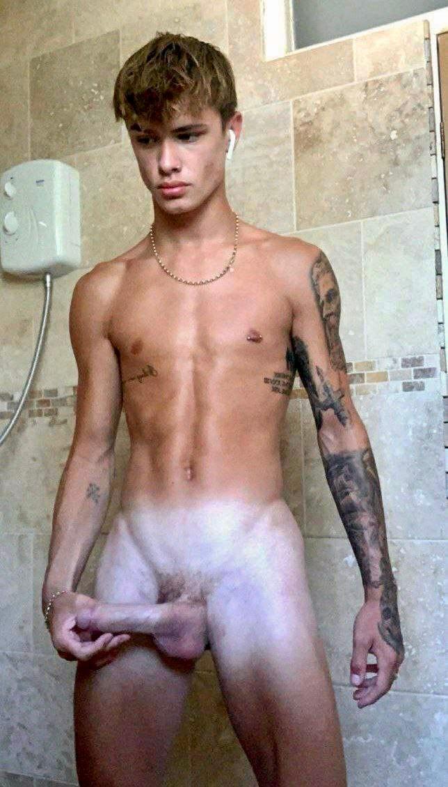 Handsome slender naked boy with boner!