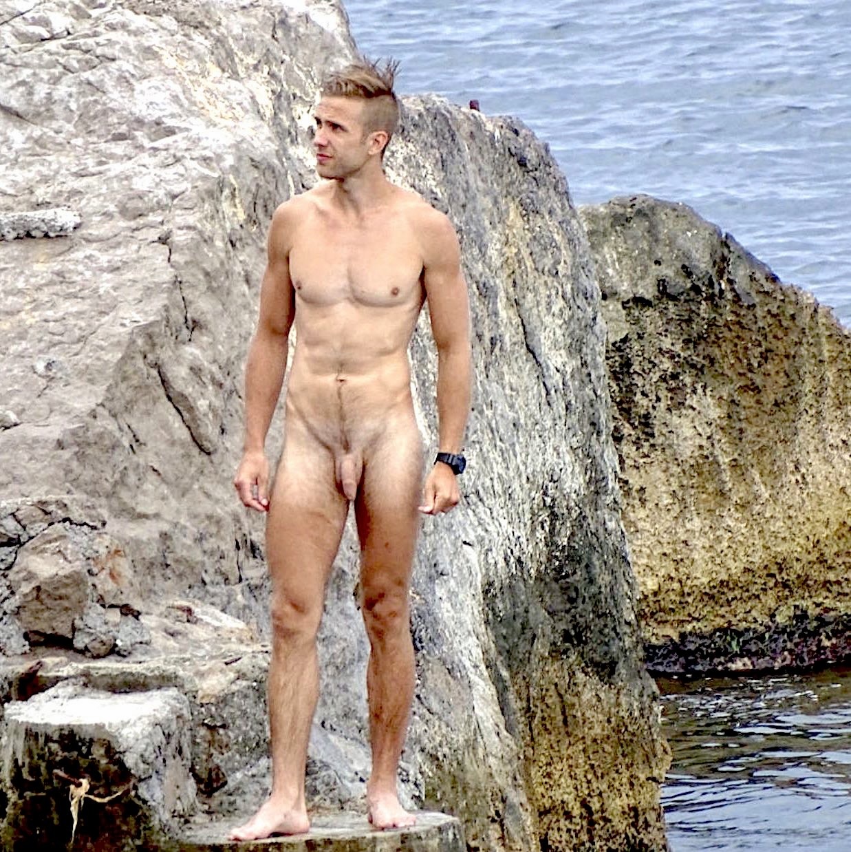 Nude dude on the rocks by the sea!