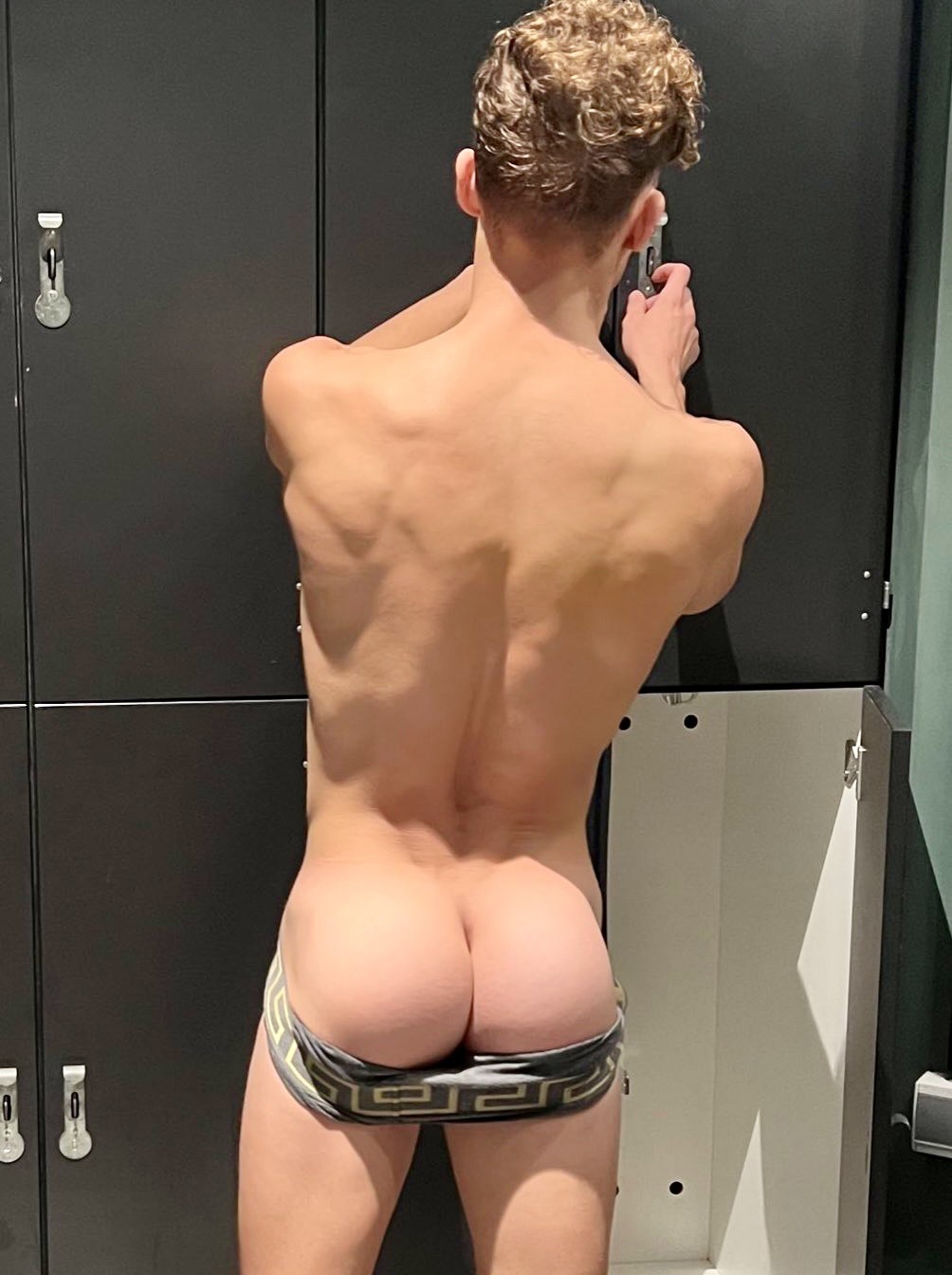Love the way he lowered his shorts in the locker room! An invitation to get fucked?Guy taking selfie of ass in lockerroom