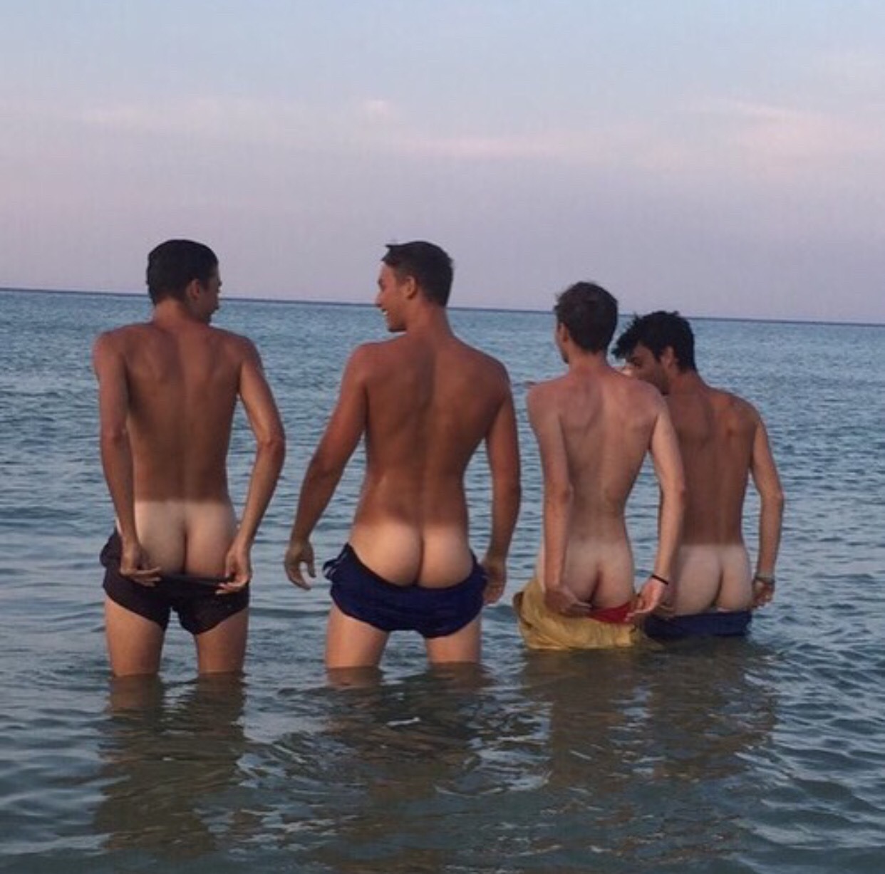 Teasing the tops watching them from the beach! Those hot butts may not leave the beach unfucked!Friends showing asses being silly