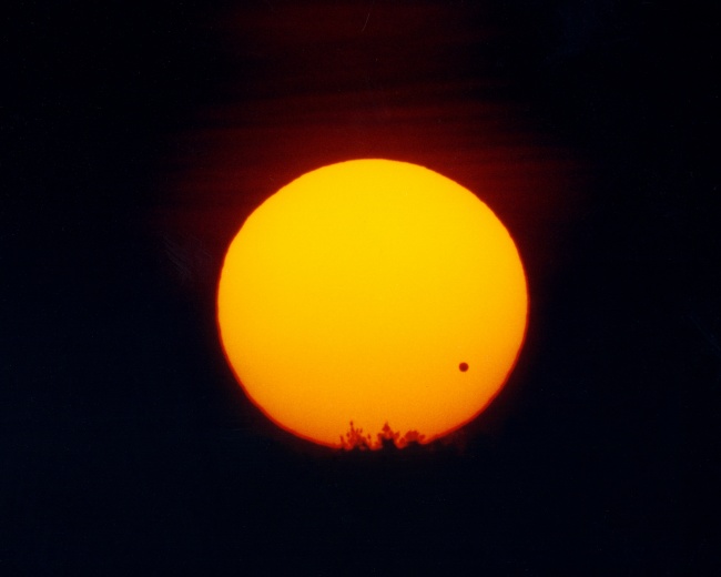 Here is one of my photos I took in 2004 of the Transit of Venus. The dot is Venus. I was east of Boston in Acton, MA and the sun was rising over a small hill and I took this photo. If I can ever get the collage photo to attach, I have a series of three images showing the rising sun/Venus.