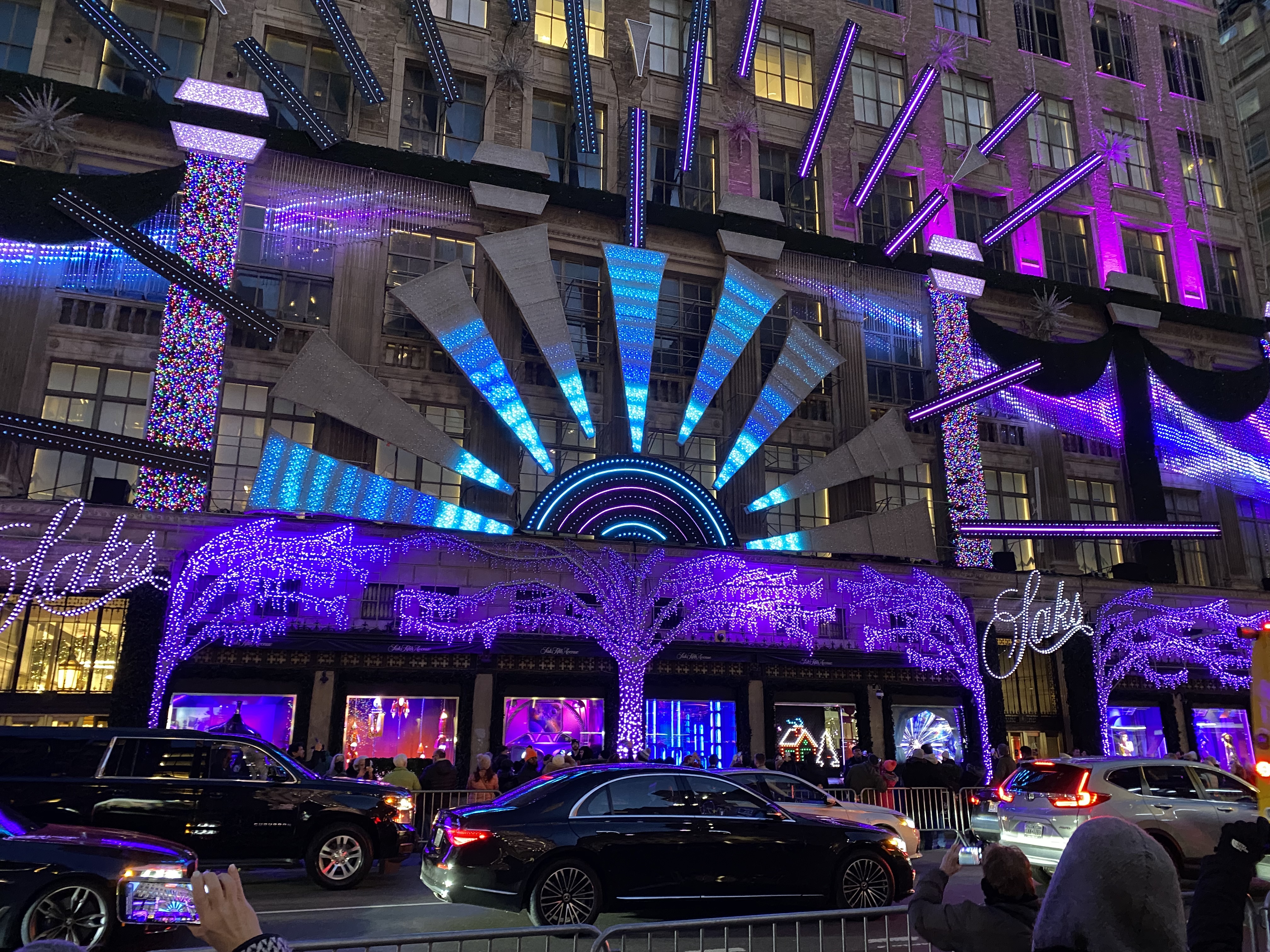 My young nephew proposed marriage to his now wife in Rockefeller Center just before Christmas in front of that decorated tree (well a different tree but basically same decorations)! Very beautiful.And of course the pièce de résistance of Fifth Avenue at Christmas time, the Tree and the light show across the street on the side of Sax Fifth Avenue. It never fails to deliver.