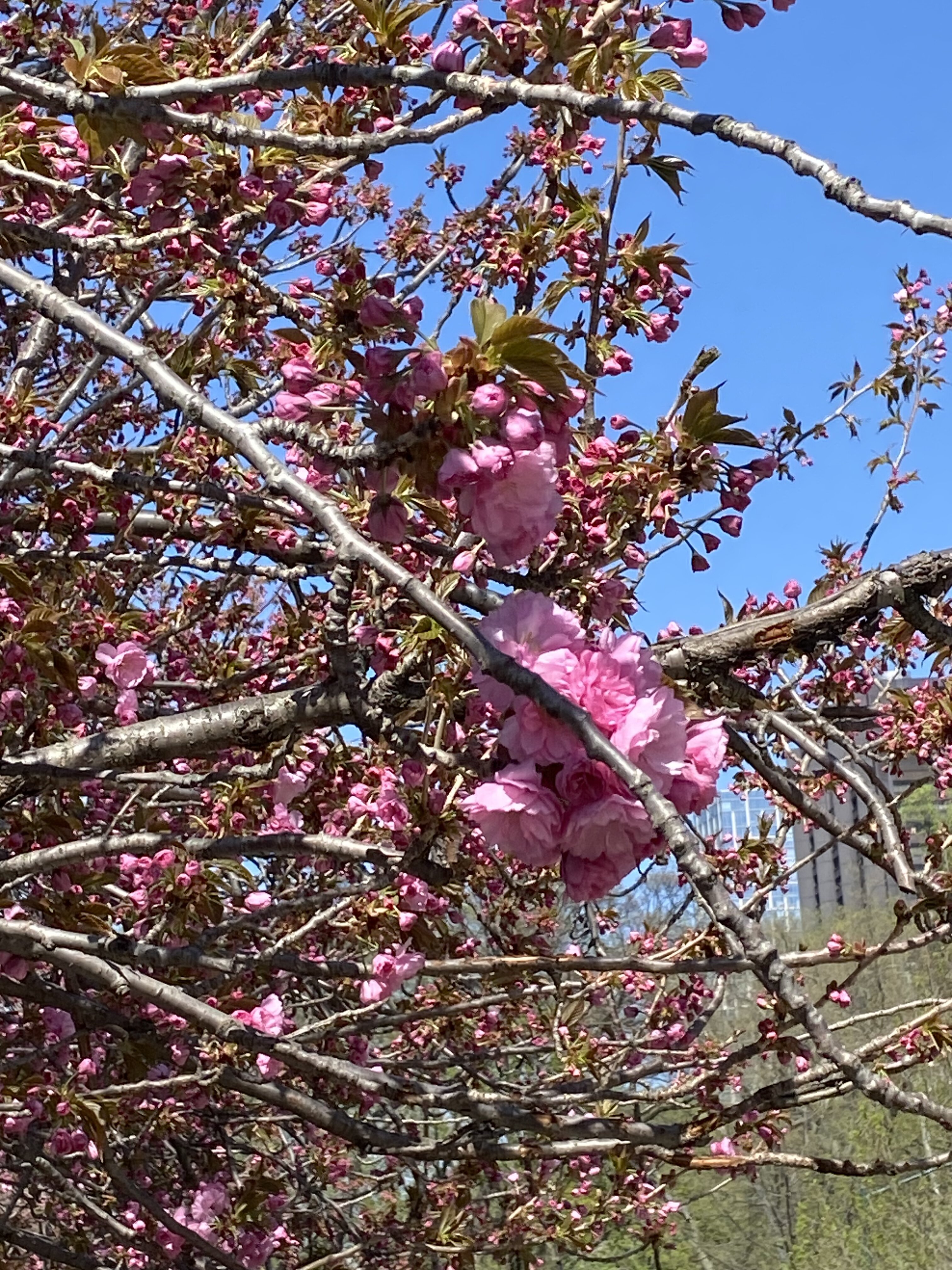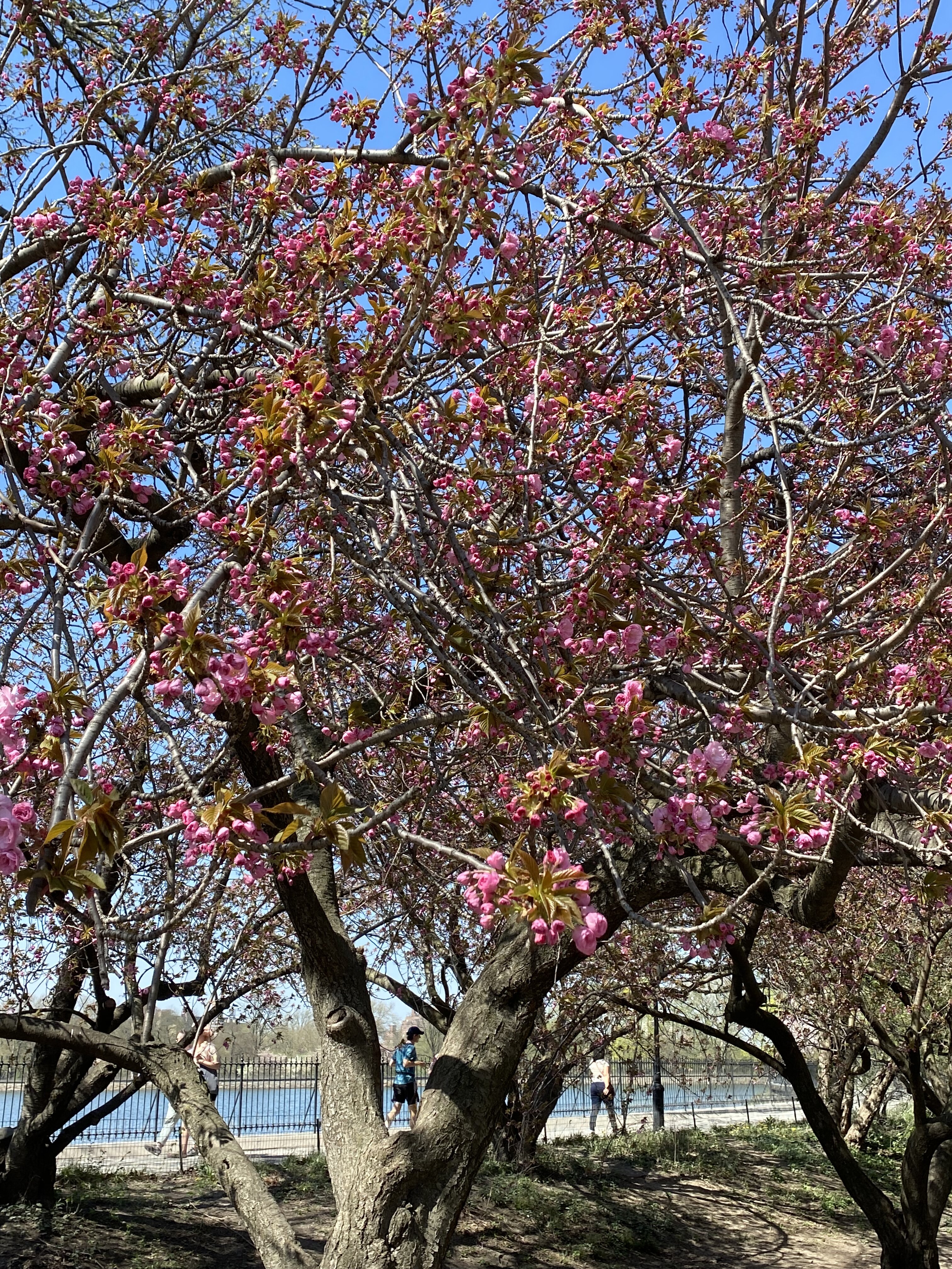 Cities are pretty even if they are pure chaos.Today I ventured to Central Park to check out Cherry Blossoms around the Jacqueline Onassis Reservoir. Turns out that many had already peaked. But it was a beautiful summer like day close to 90 degrees, but with a nice breeze off the water. And I did get some nice pics too.