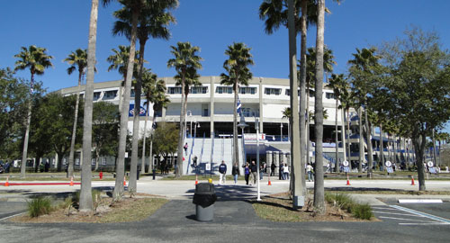 The Yankees are a NY team. They do their Spring training in Tampa. The Rays are a Tampa Bay team. They do their Spring training elsewhere in Florida. Steinbrenner was a resident of Tampa and made his fortune here as a shipbuilder in our port. He has a varied history but has always been revered as one of Tampa's greatest contributors to our community. Here is the Wiki link to Steinbrenner's history: